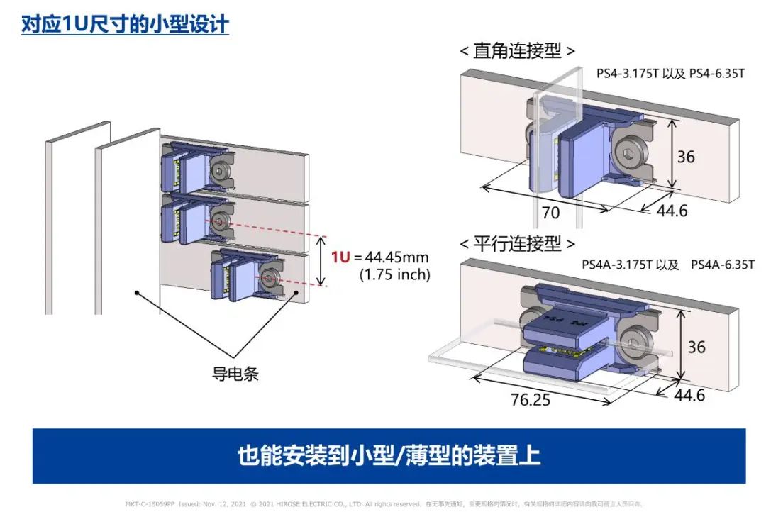 The characteristics of 1. Plug-in connection to improve the operability of assembly, maintenance and module expansion, and improve the safety of operation. 2. The floating structure absorbs the position deviation between units ±2mm in the XY direction. 3. Rated current:
