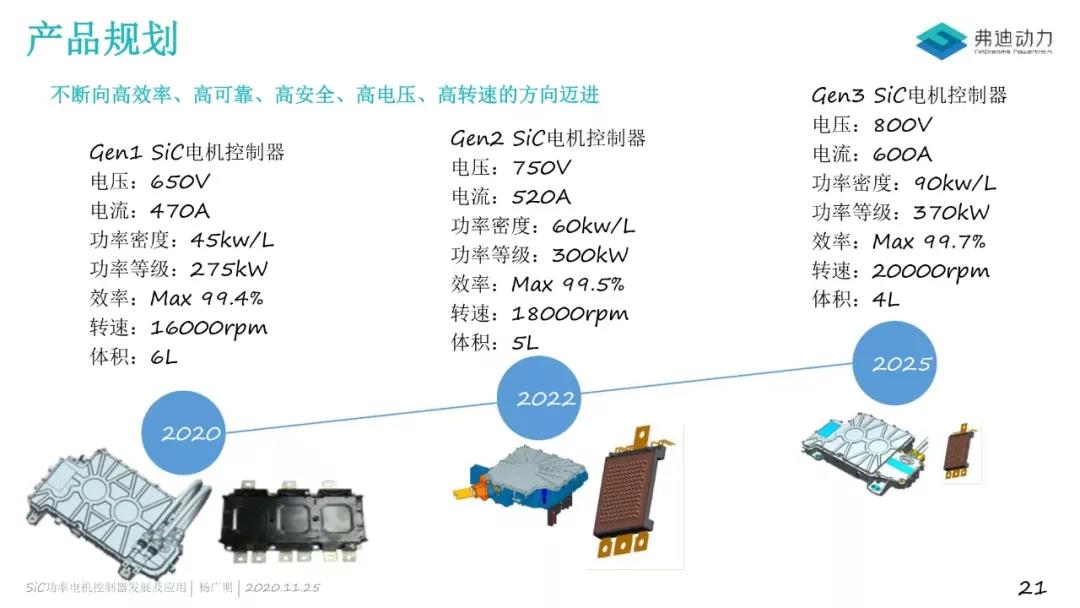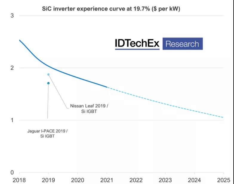 比亚迪BEV的电驱动供应包含弗迪动力的三合一以及华为的六合一。热销车型匹配的动力总成如下: 元/海豚/e2等A0级轿车和SUV普遍采用功率70kW、转速15000rpm的三合一电驱动总成,功率模块为IGBT模块; 秦PLUS EV等A级轿车多匹配100kW、12100rpm的三合一电驱动总成;宋PLUS EV匹配135kW、转速15000rpm的三合一电驱动总成。 汉EV单电机版功率为163kW,转速为15500rpm,双电机版再增加200kW的电机。与上述动力总成不同的是,200kW的三合一采用了SiC Mosfet功率模块。 此外,2021年10月比亚迪SOP一款宋PLUS EV,匹配华为的六合一动力总成系统(电机+电控+减速器+OBC+DCDC+PDU)。峰值功率123kW,转速17600rpm。该车的量还未起来,需要时间。 蔚来ES8/ES6/EC6/ET7的系统供应商皆为蔚然动力,电机、电控由蔚然动力提供,减速器来自蔚邦传动和格特拉克。 部分EC6和ES6采用的前后电机都是160kW、15000rpm的永磁同步电机,绕组形式为扁线电机;其他EC6、ES6和ES8采用的前电机为160kW永磁电机,后电机升级为240kW的异步感应电机。到了ET7,前电机为永磁同步电机,峰值功率180kW,转速16000rpm,后电机为异步感应电机,功率300kW,转速15000rpm。 扁线、永磁+感应电机,已经成为蔚来动力总成的显著特征。而且,蔚来正在为动力总成增加另一个特征:碳化硅。 ET7是蔚来搭载了碳化硅功率模块的新一代高效电驱平台的首发车型,接着是最近NIO DAY上发布的ET5,也将采用碳化硅电驱系统,百公里加速仅需4.3秒。 特斯拉是前永磁后感应电机的“鼻祖”,Model 3和Model Y配套的永磁电机功率覆盖180kW到220kW,感应电机只有一款,峰值功率137kW。 除了电驱动系统变动不大以外,特斯拉一直坚持使用SiC MOSFET功率器件。2018年特斯拉发布的Model 3开始采用ST的SIC MOSFET逆变器;到2020年推出的Model Y据Munro & Associates拆解分析,后轮驱动的动力总成也采用了SiC MOSFET;今年6月的新款Model S Plaid沿用碳化硅技术。 据IDTechEx数据,对比2018年Model 3逆变器和2020年Model Y第二代逆变器的估算成本,短短三年内,特拉斯的SiC逆变器成本大幅下降,其成本几乎与2019款日产聆风和捷豹I-PACE 的硅基IGBT模块相当。